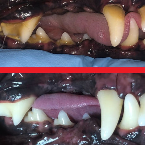Gentle cleaning using a dental scaler and curettes to remove plaque and tartar and keep your dog's smile clean. Note: we do not go under the gums.